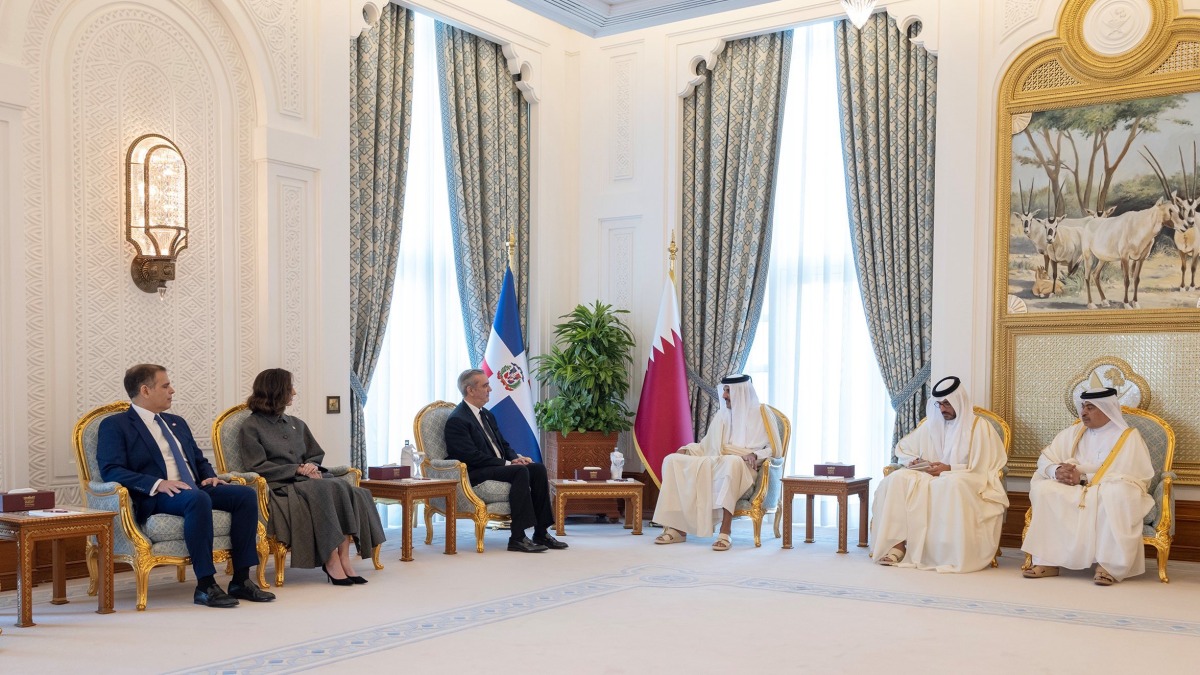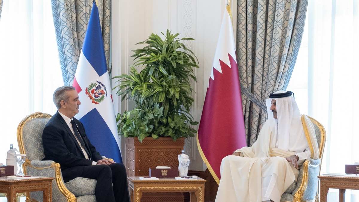 Doha, Qatar: The Amir His Highness Sheikh Tamim bin Hamad Al Thani held an official session of talks at the Amiri Diwan this morning with His Excellency President Luis Rodolfo Abinader of the friendly Dominican Republic.