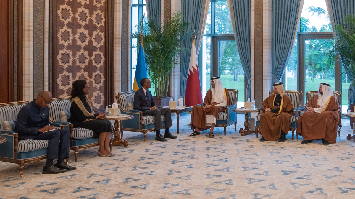 Doha, Qatar: The Amir His Highness Sheikh Tamim bin Hamad Al Thani met His Excellency Paul Kagame, President of the friendly Republic of Rwanda, in his office at Lusail Palace on Saturday.