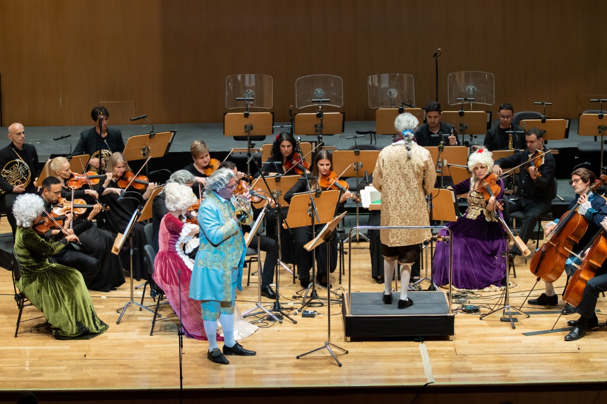 Lorena Manescu, Concertmaster, who played e-violin and also portrayed Marie Antionette, said: “What truly captivates me about Mozart’s genius is the profound depth beneath the apparent simplicity of his works and the vast spectrum of emotions they traverse, from profound sorrow to boundless joy.”