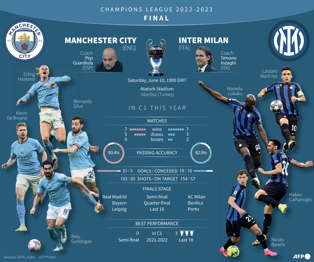 Istanbul: Manchester City and Inter Milan clash in Saturday's Champions League final in Istanbul with the English side, under Pep Guardiola, strongly fancied to win European club football's biggest prize for the first time.