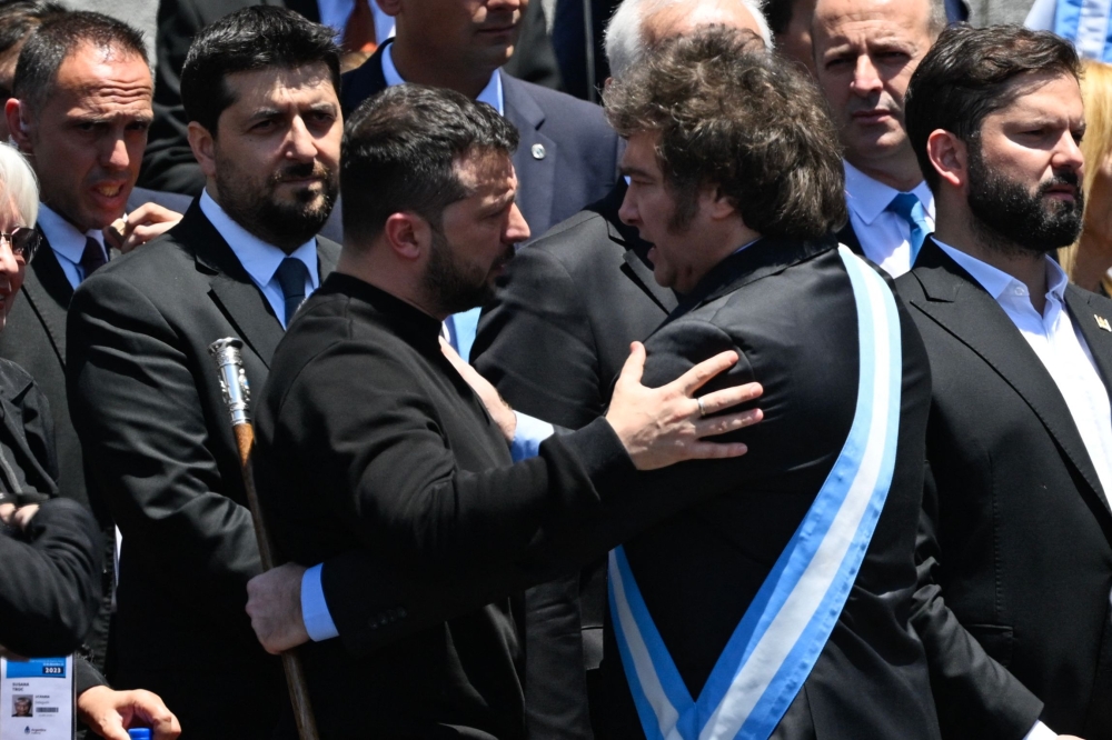 Also joining was Ukrainian President Volodymyr Zelenskyy, who is making his first visit to Latin America as Kyiv continues to court support among developing nations for its 21-month-old fight against Russia’s invading forces. Zelenskyy and Milei shared a close exchange just before the inaugural address.