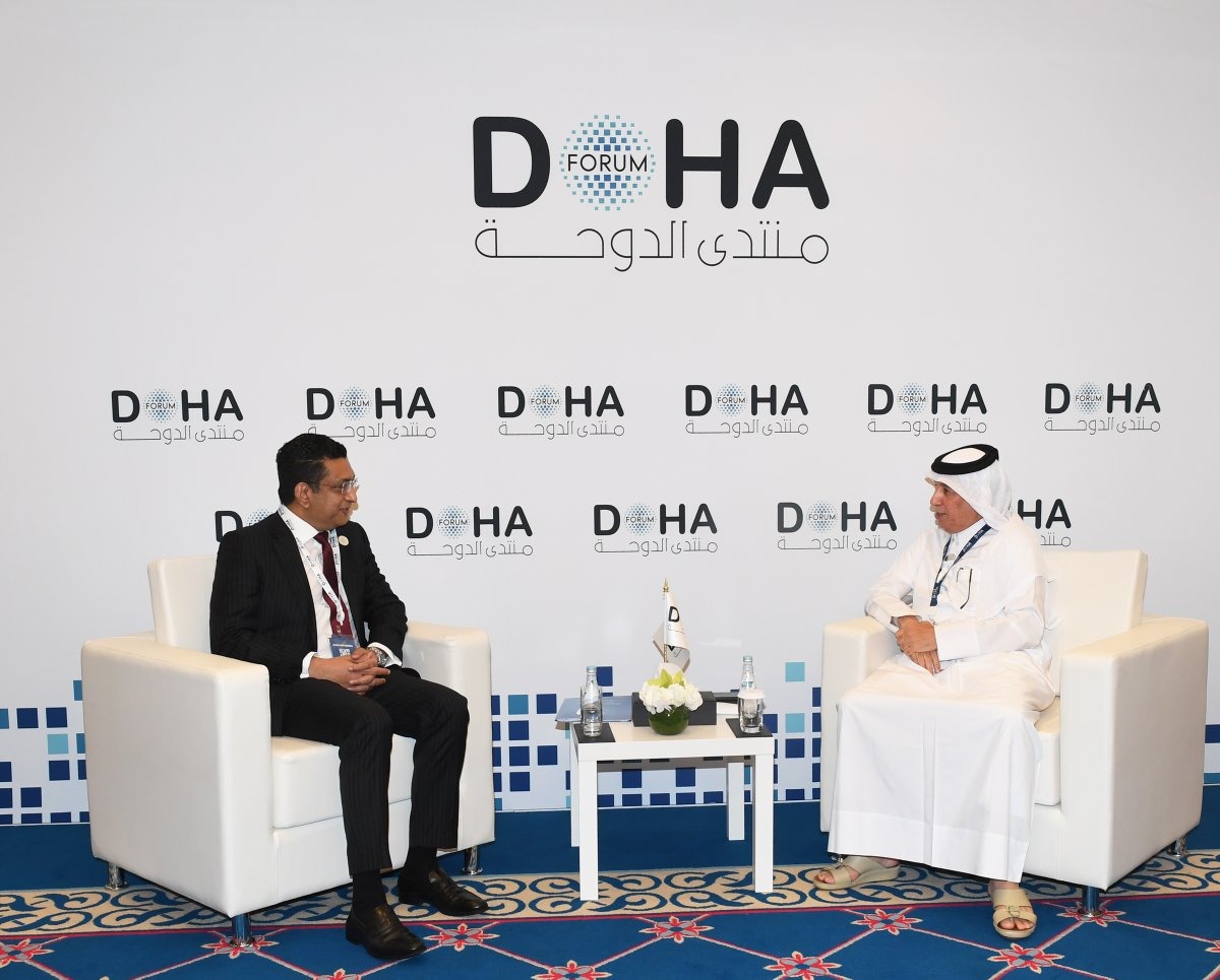 Doha, Qatar: Minister of State for Foreign Affairs HE Sultan bin Saad Al Muraikhi held Sunday separate meetings with Minister of Foreign Affairs and Expatriates of the Republic of Yemen HE Dr. Ahmed Awad bin Mubarak, and Minister of Foreign Affairs of the Democratic Socialist Republic of Sri Lanka HE Ali Sabry, on the sidelines of the currently held Doha Forum 2023.