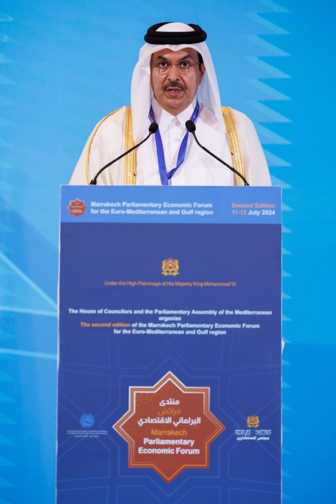 This came in a speech by the Member of the Shura Council and Vice President of the Parliamentary Assembly of the Mediterranean HE Abdullah bin Nasser bin Turki Al Subaie, during the second session of the Marrakesh Economic Parliamentary Forum for the Euro-Mediterranean and Gulf regions, organized by the Parliament in cooperation with the House of Councilors of the Kingdom of Morocco.