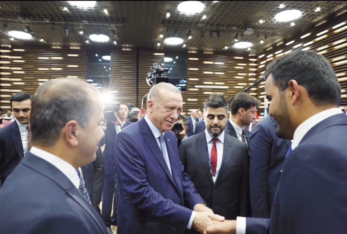 Qatar Olympic Committee President H E Sheikh Joaan bin Hamad Al Thani is received by President of the Republic of Turkiye Recep Tayyip Erdogan at the dinner banquet in honour of the dignitaries and official guests during the opening ceremony of the 5th Islamic Solidarity Games in Konya.