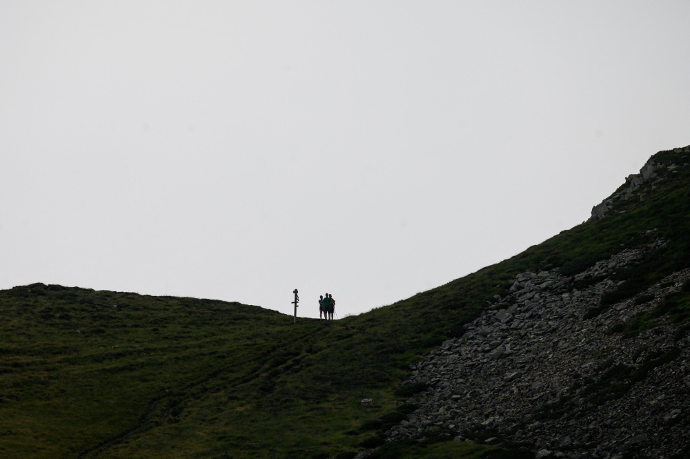This photograph shows hikers in the mountains near Ustou, in the French Pyrenees where British hiker Tom Doherty disappeared, between Col d'Escots and Cirque de Gerac, on August 11, 2024. (Photo by Ed JONES / AFP)