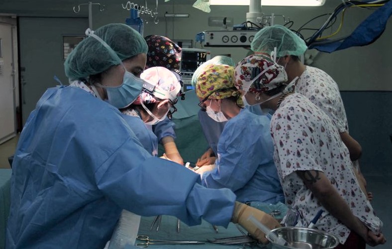 Doctors attend a surgery procedure to perform the first-ever multi-visceral intestinal transplant from a controlled pediatric donor in asystole to a 13-month baby girl, in Madrid, Spain, in this undated handout image obtained by Reuters on October 11, 2022.
