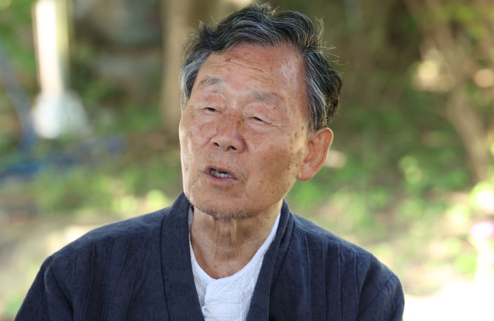 South Korean novelist Han Seung-won, father of South Korean author Han Kang who won the 2024 Nobel Prize in Literature, speaks to reporters outside his writing studio in Jangheung on October 11, 2024. Photo by YONHAP / AFP
