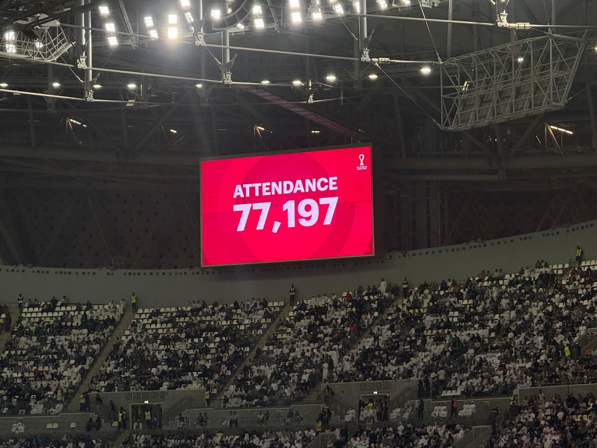 A crowd of 77,197 packed Lusail Stadium tonight to witness Palestine take on Saudi Arabia in the FIFA Arab Cup quarter-finals.