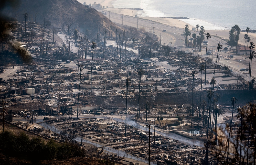 Burned businesses and homes along the Pacific Coast Highway within the Palisades Fire zone area of Los Angeles. (Photo by Melina Mara/The Washington Post)