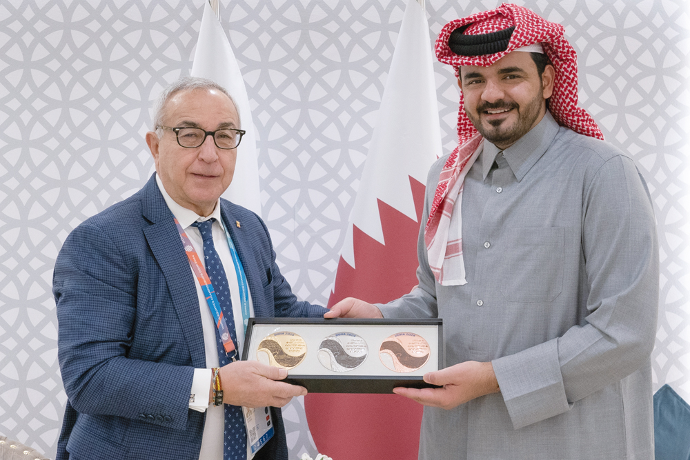 Qatar Olympic Committee President H E Sheikh Joaan bin Hamad Al Thani yesterday met Minister of Youth, Sport, Arts and Recreation of the Republic of Zimbabwe, and Executive Board Member of the International Olympic Committee H E Dr. Kirsty Coventry, and the President of the Spanish Olympic Committee Alejandro Blanco Bravo on the sidelines of the World Aquatics Championships - Doha 2024, currently taking place in Doha.