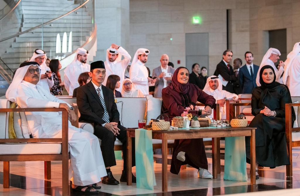 Qatar Museums' Chairperson HE Sheikha Al Mayassa bint Hamad bin Khalifa Al Thani and Indonesian Ambassador to Qatar HE Ridwan Hassan during the Qatar-Indonesia Year of Culture launch at the Museum of Islamic Art (MIA) on March 12, 2023.