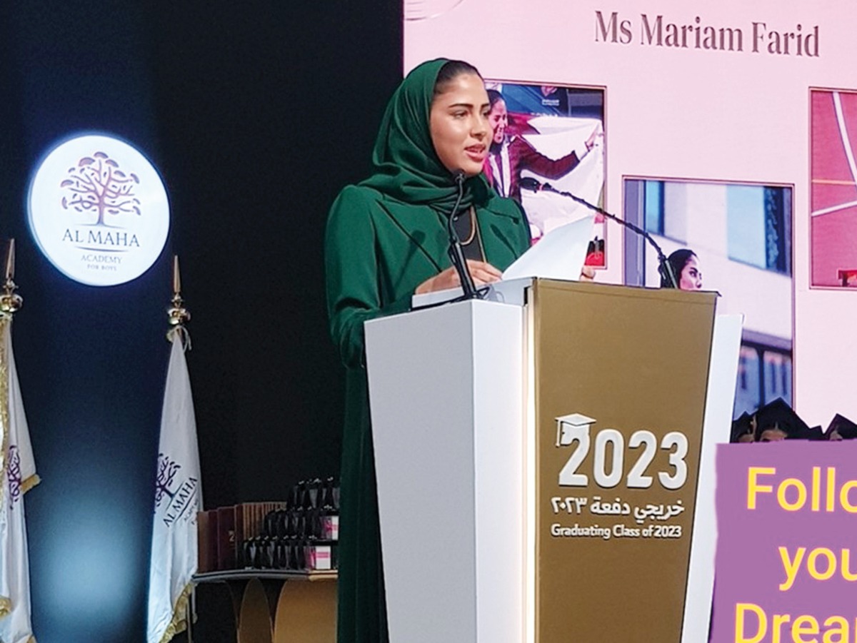 Films about students' academic journeys were displayed. There were some emotional reminiscences as students prepared to move on from school to university. Most students have attended their Academy for the full 12 years since KG. There were innovative touches too. Al Maha Boys sent surprise messages of gratitude to their mothers and families on Whatsapp provoking spontaneous, joyful reactions. Al Jazeera Students received moving video messages and tributes from their fathers, mothers, and families. At Al Maha Academy for Girls, special guest speaker and Qatari athlete, Ms Mariam Farid, inspired the girls with her spirited words about ‘working hard and following dreams.’