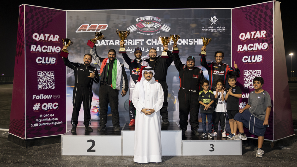 Qatar Racing Club General Manager Sheikh Jabor bin Khalid Al Thani crowned the winners at the end of the first round of the Qatar Drift Championship.
