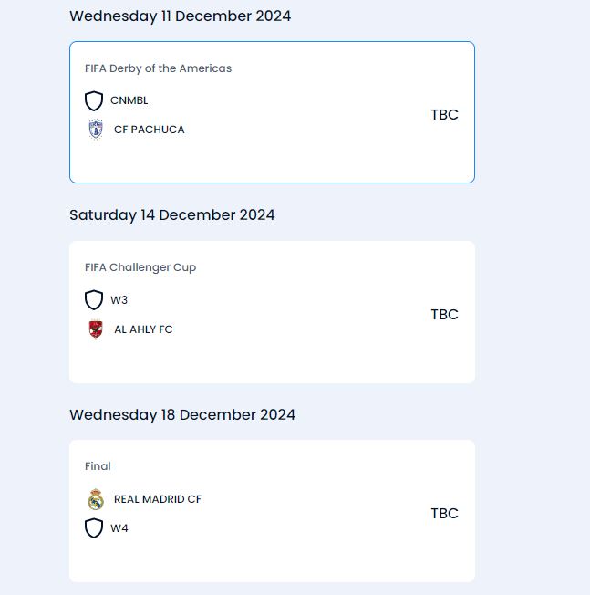 Real Madrid, Pachuca, Al Ahly, and the soon-to-be-decided Copa Libertadores winner are set to compete in the finals in Qatar