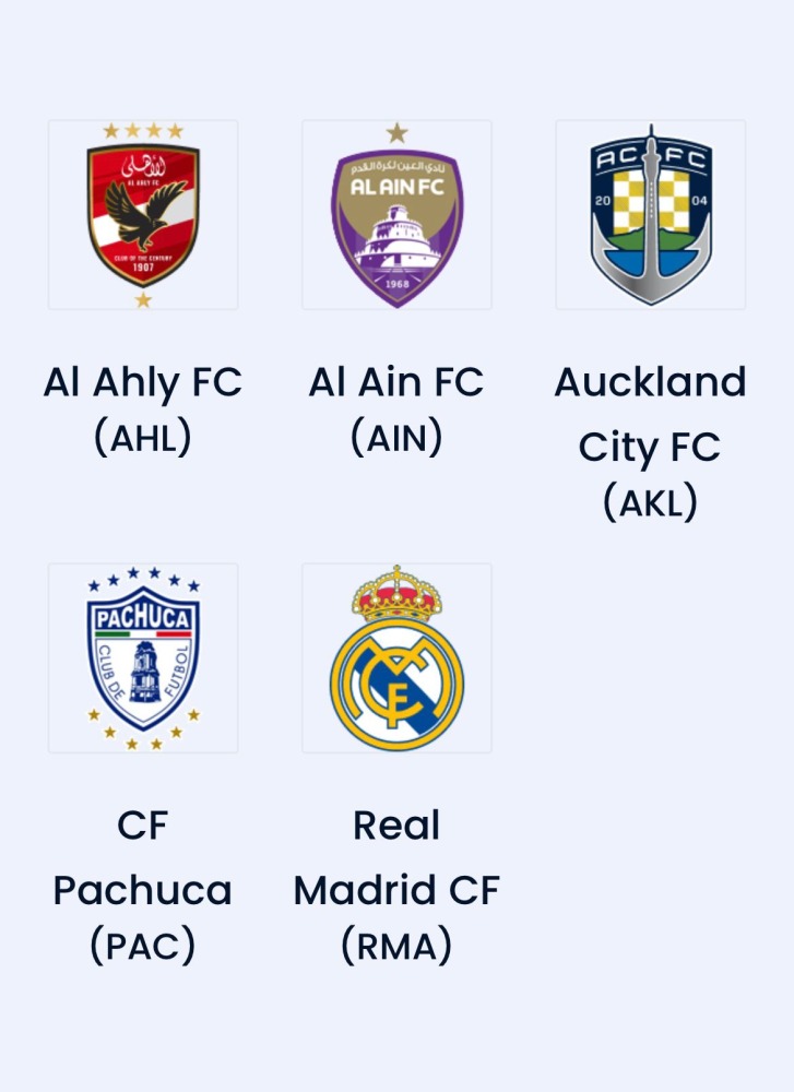 This event brings together champions from six continental confederations (Real Madrid Pachuca, Al Ahly, Al Ain, Auckland City and the CONMEBOL Copa Libertadores Winner - still to be decided)