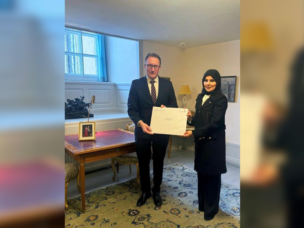 The message was delivered by Ambassador of the State of Qatar to the Kingdom of Sweden HE Nadia bint Ahmed Al Shaibi, during her meeting today with First Marshal of the Swedish Royal Court HE Goran Lithell.