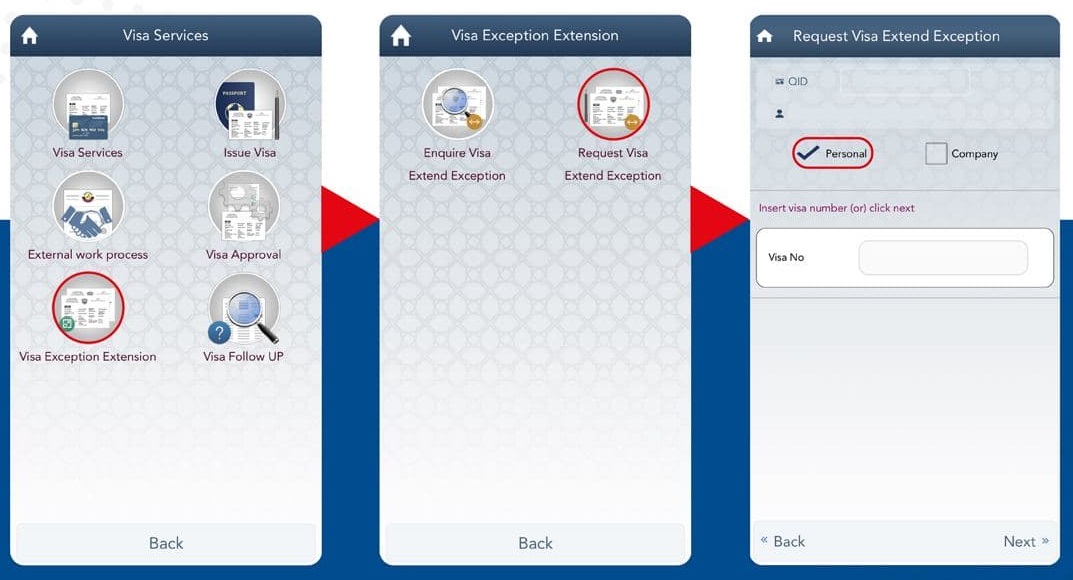 Exceptional Visa Extension Service: 'Visa Services' window on Metrash2 will allow to complete the exceptional visa extension service for Businessmen visa, Official visa and Tourist Visa. This service allows extending some types of visit visas as per the specified conditions. The applicant shall explain the case and attach the required documents. The application will be assessed electronically.