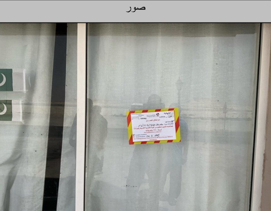 The closure was ordered due to violations of Law No. (8) of 1990 regulating the control of human food, as amended by Law No. (4) of 2014.
