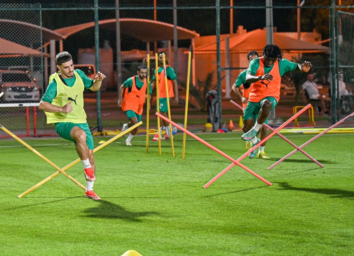 Al Shahania players train ahead of Al Ahli quarter-final.