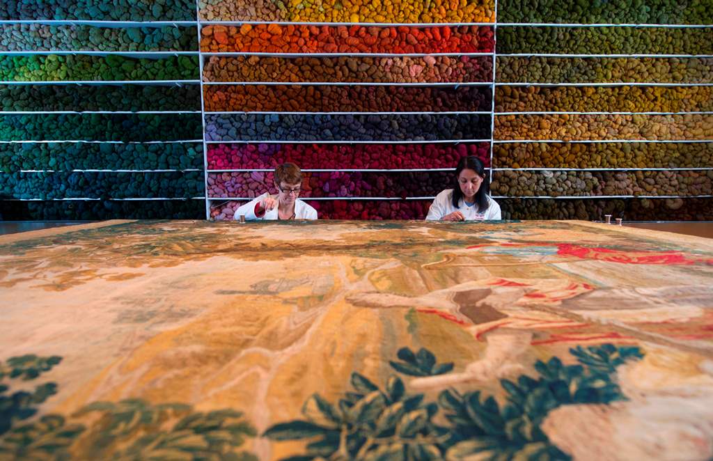 The restorers have also had to develop expertise in removing huge tapestries from their hanging places, a delicate task given their size, weight and fragility.