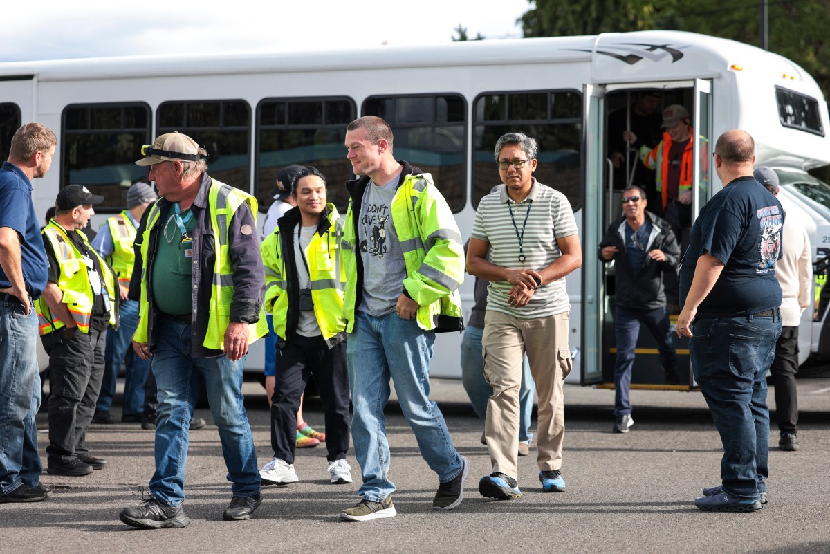 Boeing workers arrive to vote on a proposed contract between Boeing and union leaders and whether or not to strike if the contract is rejected, at the Aerospace Machinists Union building in Renton, Washington, on September 12, 2024. Photo by Jason Redmond / AFP