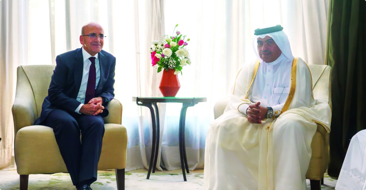 Doha, Qatar: Minister of Finance, H E Ali bin Ahmed Al Kuwari met with his counterpart Minister of Finance of Turkiye, H E Mehmet Simsek on the sidelines of the Annual Meetings of the Boards of Governors of the World Bank Group (WBG) and the International Monetary Fund (IMF) held from October 9 to 15, 2023 in Marrakesh, Kingdom of Morocco.