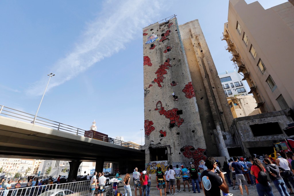 A climbing competition has been held on the El Kamal building, whose walls are studded with the marks of conflict from the Lebanese civil war (1975-1998). Photos by Ratib Al Safadi - Anadolu Agency