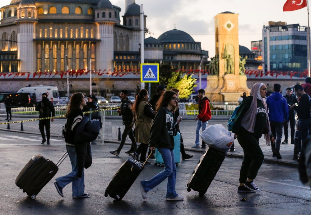 Tourists walk through Taksim Square after an explosion on busy pedestrian Istiklal street in Istanbul, Turkey, November 13, 2022. (REUTERS/Dilara Senkaya)