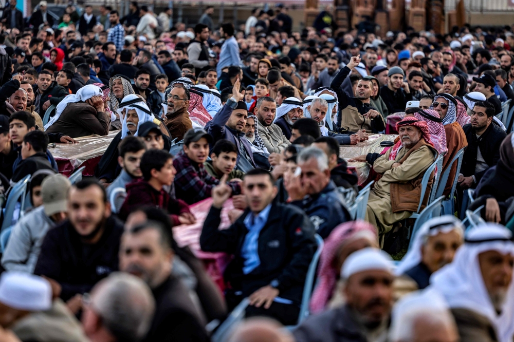 Palestinians attend a rally marking Al-Quds (Jerusalem) Day, a commemoration in support of the Palestinian people celebrated annually on the last Friday of the Muslim fasting month of Ramadan, in Gaza City, on April 14, 2023. (Photo by MOHAMMED ABED / AFP)