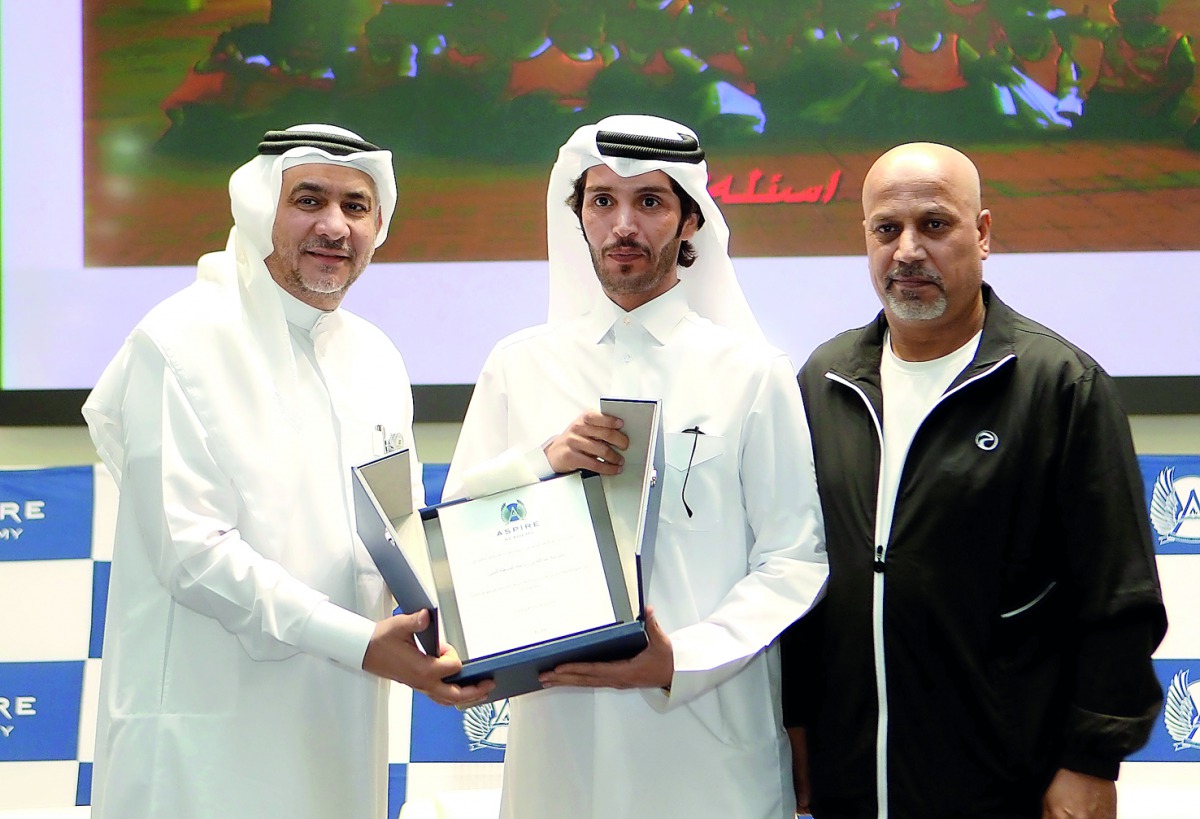 Some of Aspire Academy’s senior officials taking part in the awarding ceremony included: Ali Al Hitmi, Secretary-General of the Qatar School Sport Association (QSSA), Badr Al Hay, Director of Education and Student Care, Jassem Al Jaber, Aspire Academy’s School Principal and Saleh Mohammed Al Marri, Talent Identification Programme’s Senior Officer.