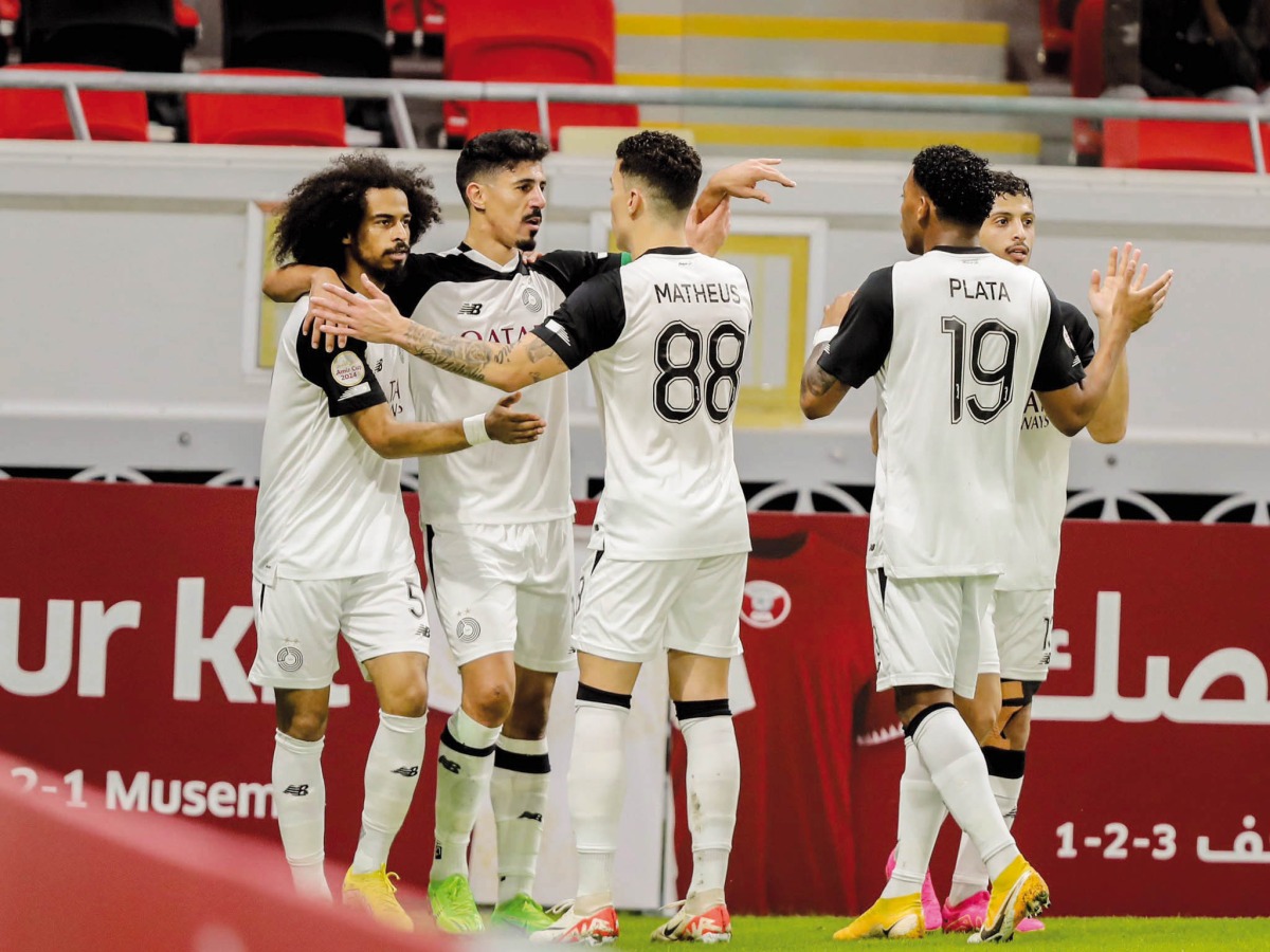 Al Sadd's Baghdad Bounedjah (second left) celebrates with teammates after scoring a goal against Al Wakrah.