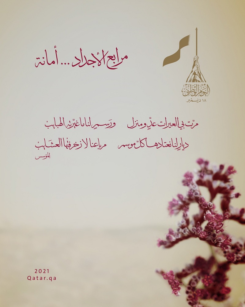 The slogan for Qatar National Day 2021 is “ANCESTRAL MEADOWS: A MATTER OF TRUST”..