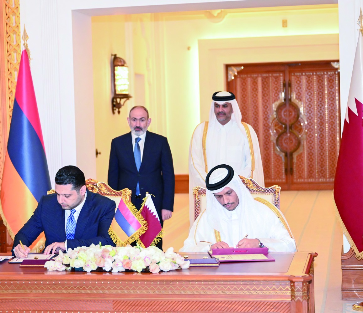They witnessed the signing of a memorandum of understanding (MoU) on establishing political talks on issues of joint interest, another MoU on news exchange between Armenian News Agency and Qatar News Agency (QNA), and a twinning agreement between the Doha Municipality and that of the city of Yerevan, a joint cooperation agreement in the health field, another cooperation agreement in education and higher education, a memorandum of understanding in the tourism and business events field, and a cooperation agreement between Qatar University and Yerevan State University.