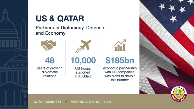 The Embassy further revealed in an infographic that Qatar has $185bn economic partnership with the US companies with plans to double this number. In another tweet, the Qatar Embassy in the US said that Qatar has created one of the most competitive economies in the world. “We take pride in not just being one of the top 10 most innovative and educated societies, but also #1 in terms of safety and security.”