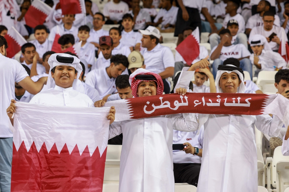 Qatar's fans cheer ahead of the 2026 FIFA World Cup Asian qualification football match between Qatar and Uzbekistan at the Jassim bin Hamad Stadium in Doha on November 14, 2024. (Photo by Karim Jaafar / AFP)