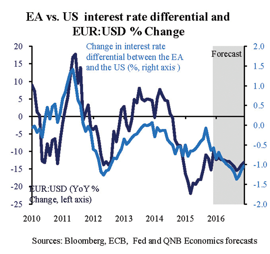 QNB’s weekly analysis noted the European Central Bank (ECB) added another dose of monetary easing on December 3. The latest measures include reducing the deposit rate by 10 basis points, taking it further into negative territory(-0.3 percent), and extending the quantitative easing programme by six months to March 2017. But that was not enough to satisfy markets, which had expected a larger stimulus. As a result, the euro rose by 3.1 percent against the US dollar on the day. However, diverging global monetary policies, with an easing ECB and a tightening US Federal Reserve (Fed), could push the euro down again. The depreciation of the euro could benefit eurozone growth by boosting its exports. It could also help inflation to rise back to its near 2 percent target.