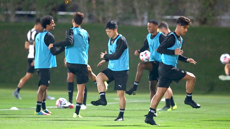 Al Sadd’s players in action during a training session on the eve of today’s FIFA Club World Cup quarter-final match against CF Monterrey of Mexico. Pic: Anwar Sadath