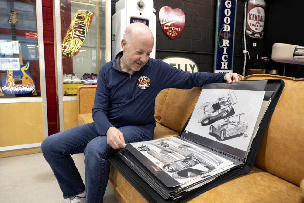 Pascal’s Hot Wheels collection features original car sketches and other memorabilia. Marvin Joseph/The Washington Post