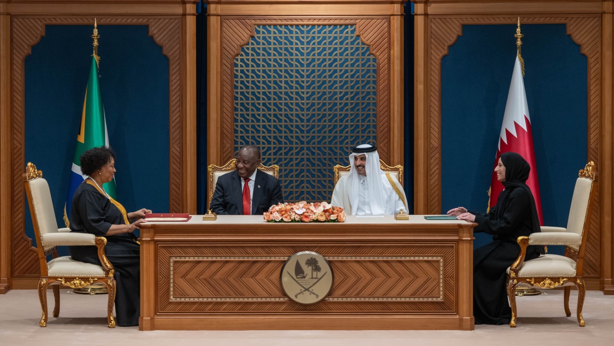 HH the Amir and HE the President of South Africa witnessed the signing of several memoranda of understanding between the two governments, including a memorandum of understanding for cooperation in the field of education, a memorandum of understanding for bilateral cooperation in empowering women and persons with disabilities, and a memorandum of understanding for the establishment of a mechanism for bilateral consultations.