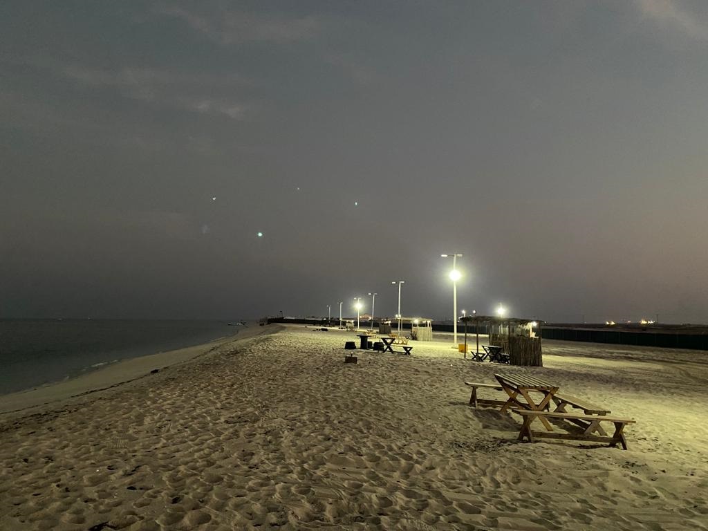 The Al Mamlha beach is around 15,000 square meters in area and the main entrance is from the north side. It is completely fenced and provide with all basic facilities like toilets, guard rooms, umbrellas, barbecue places, garbage containers, rope barrier along the beach to prevent entry of water scooters.