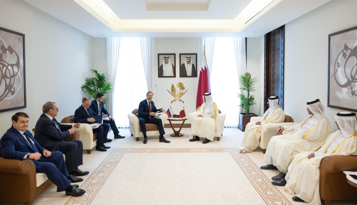 Doha, Qatar: Prime Minister and Minister of Foreign Affairs HE Sheikh Mohammed bin Abdulrahman bin Jassim Al-Thani met Sunday in Doha with HE First Deputy Prime Minister of the Russian Federation Denis Manturov.