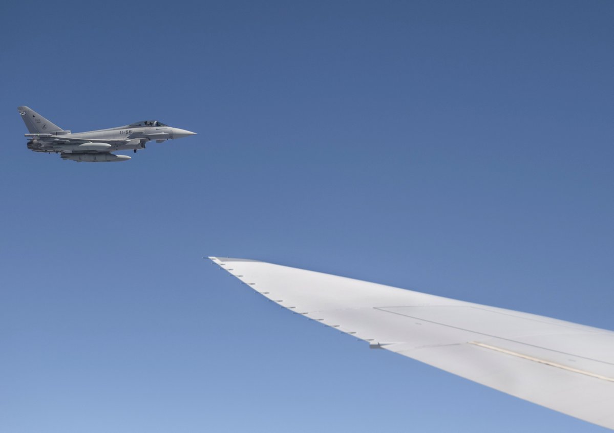 HH Amir's plane was accompanied by two planes of the Royal Spanish Air Force upon entering the Spanish airspace, welcoming the arrival of HH the Amir.