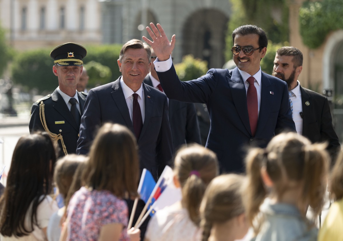Ljubljana: An official reception ceremony was held for the Amir H H Sheikh Tamim bin Hamad Al Thani on his arrival at Congress Square in Slovenian capital Ljubljana this morning. President of Slovenia HE Borut Pahor hosted the reception.