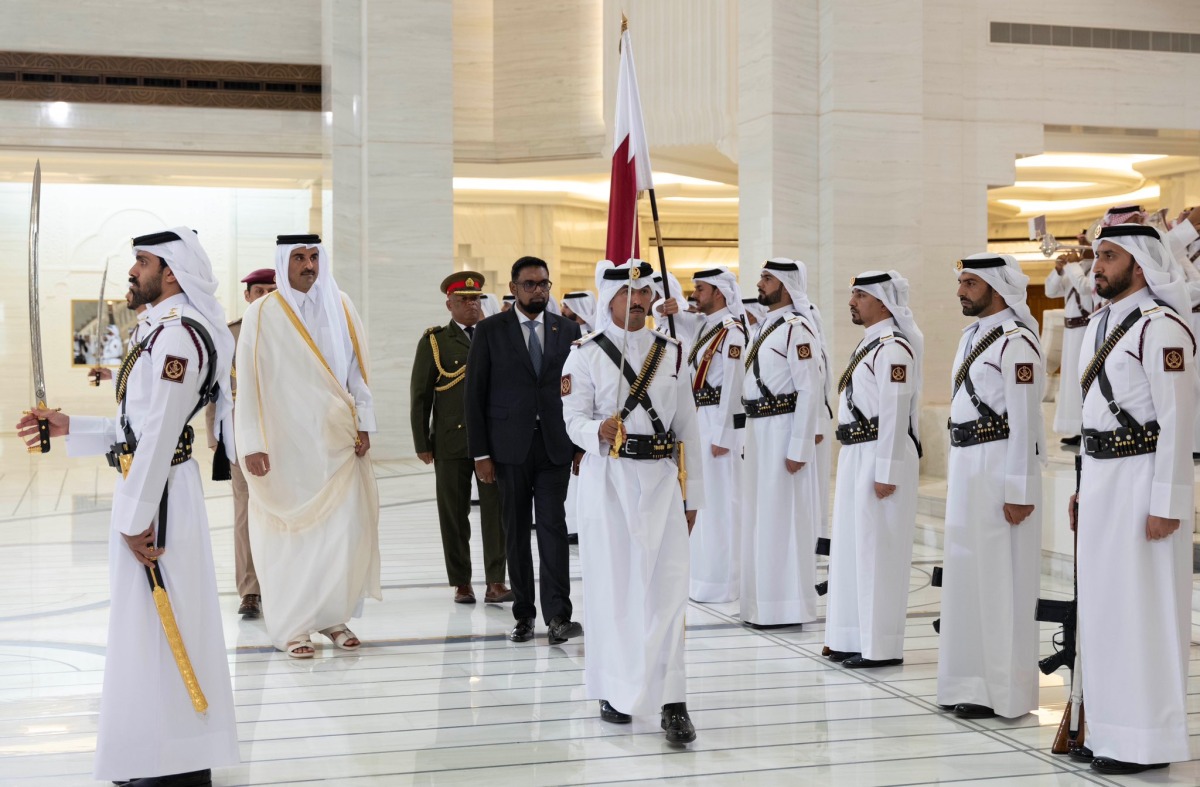 Doha: The Amir HH Sheikh Tamim bin Hamad Al Thani and President of the Cooperative Republic of Guyana H E Dr Mohamed Irfaan Ali, held an official talks session on Tuesday morning at the Amiri Diwan.