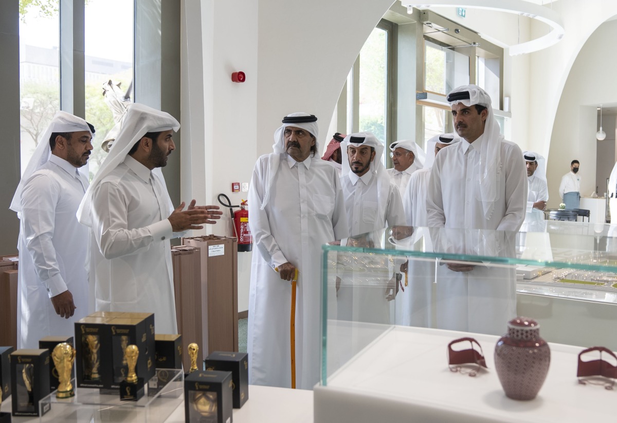 During the tour, Their Highnesses listened to an explanation about receiving and organizing visits at the Visitor Center in Msheireb, and the tour of Qasr Al Hukum in the Amiri Diwan, which aims to introduce the history of the Amiri Diwan, the march of the rulers of the State of Qatar, and the urban characteristics of its palaces.