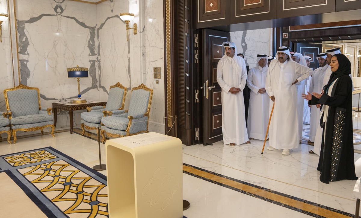 After that, Their Highnesses were briefed on the stations included in the palace, and they listened to an explanation of each station. Their Highnesses also visited the Sheikh Abdullah Bin Jassim Al-Thani Majlis, which is one of the stations of Qasr Al Hukum tour.