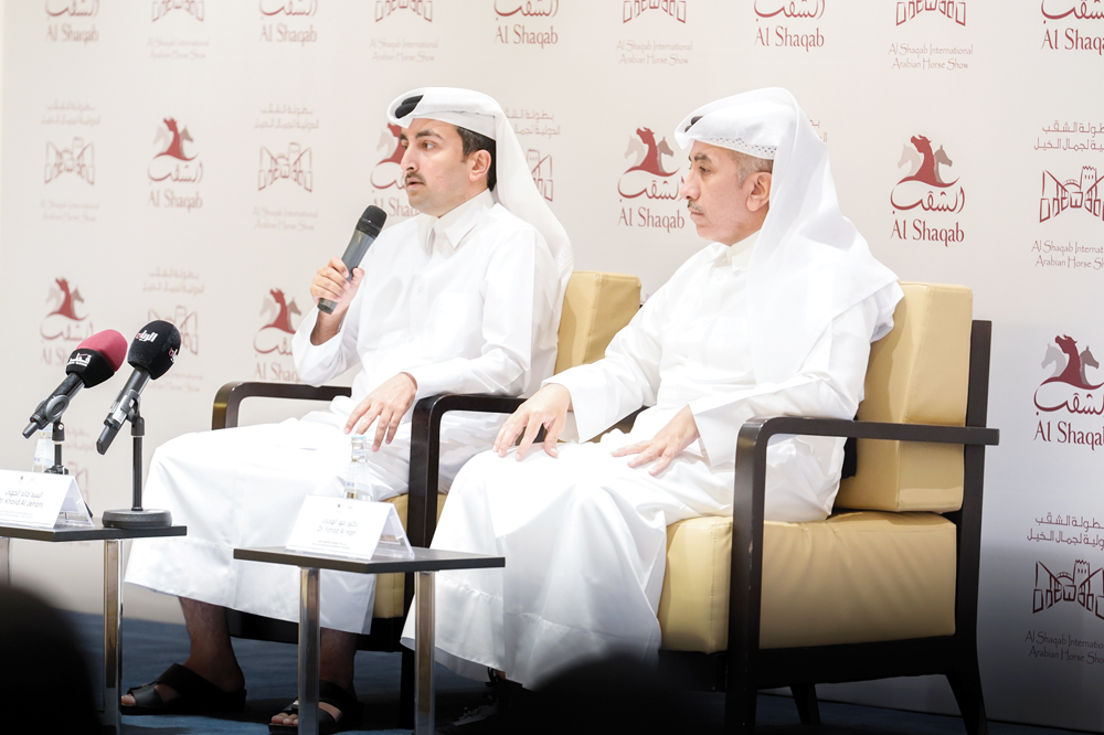 Al Shaqab's Breeding & Show Manager and Al Shaqab International Arabian Horse Show Event Director Khalid Al Jehani (left) and Al Shaqab Protocol & International Relations Manager Dr Fahad Al Hajri during a press conference, yesterday.