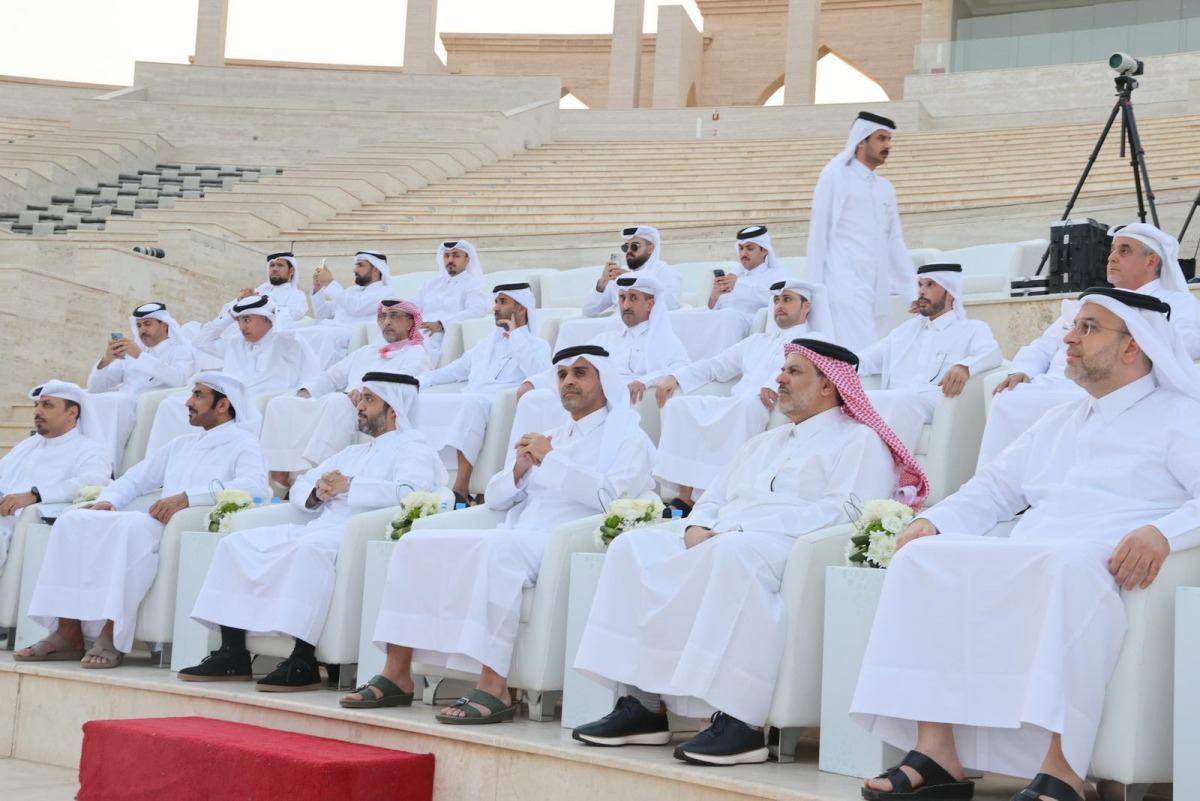 Minister of Transport H E Sheikh Mohammed bin Abdulla bin Mohammed Al Thani, Chairman of Qatar Tourism H E Saad bin Ali Al Kharji, and other officials witness the trial of Qatar's first unmanned eVTOL urban flight at Katara yesterday.