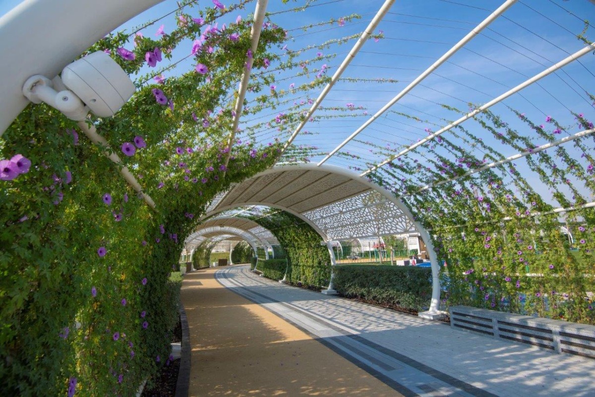 The Islamic Mashrabiya-style structures are installed to allow air circulation from air conditioners, with a solar panel cover that serves as a cover along the corridor and generates electricity and providing a plant fence at a suitable height along the corridors, in addition to planting fast-growing climber veins that cover the pedestrian tracks from all directions.
