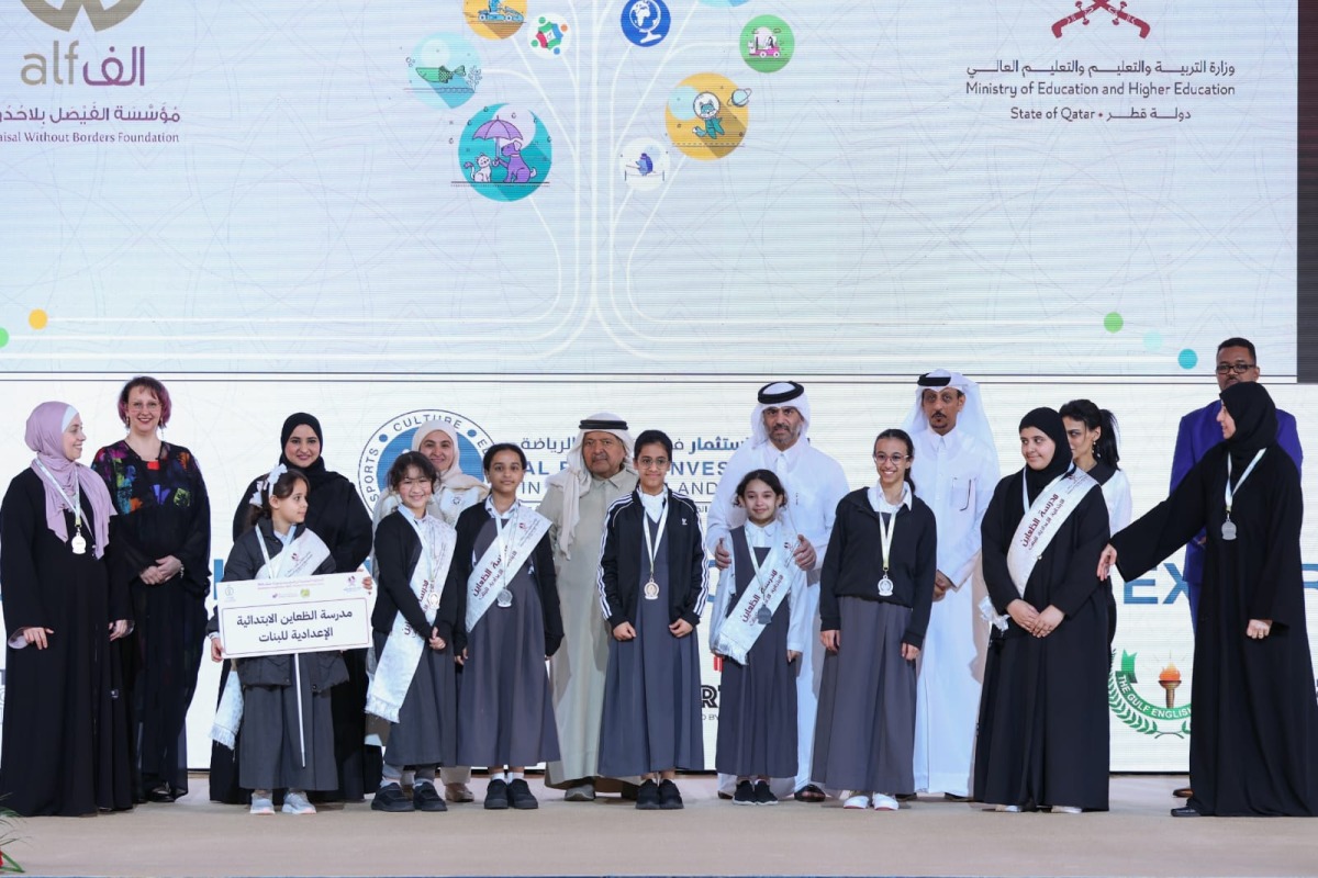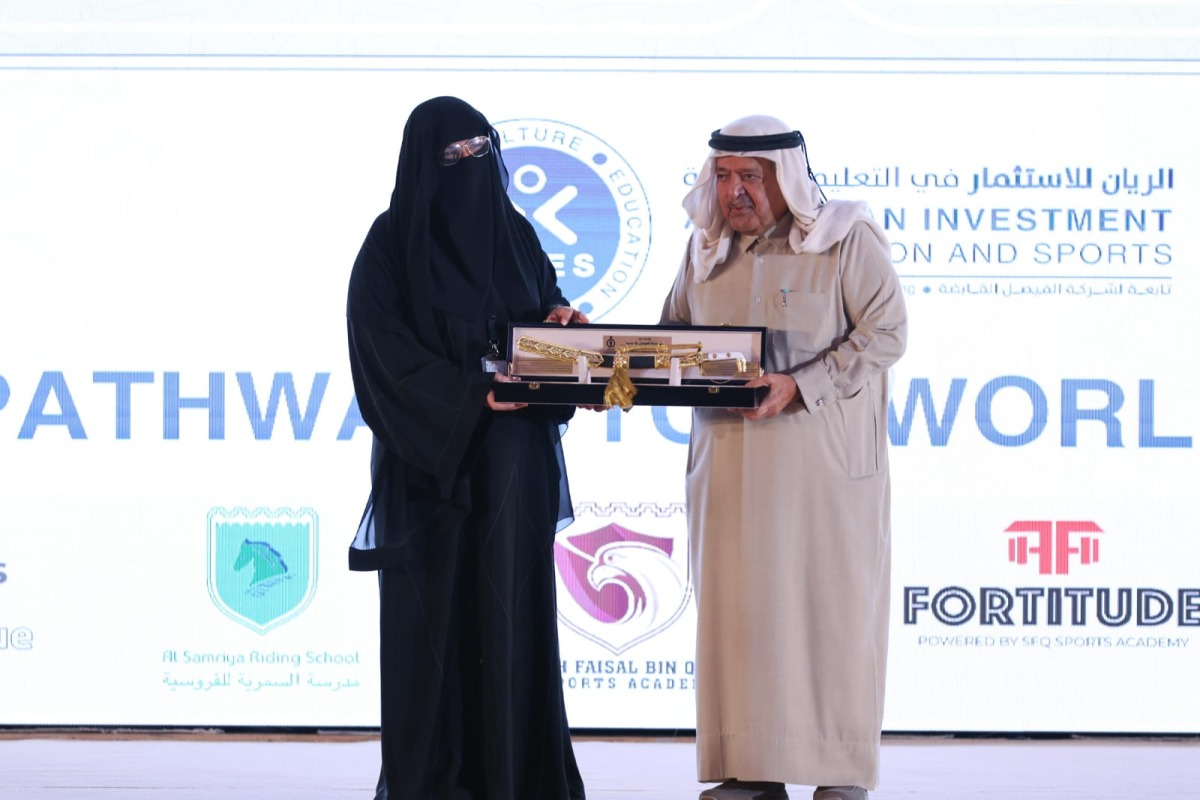 The ceremony was attended by His Excellency Sheikh Faisal bin Qassim Al Thani, Chairman of Al Faisal Without Borders Foundation, Maha Zayed Al-Qaqa Al-Ruwaili, Assistant Undersecretary for Educational Affairs at the Ministry of Education and Higher Education, Omar Abdul Aziz Al Naama, Assistant Undersecretary for Private Education Affairs, Engineer Abdullatif Ali Al-Yafei, the General Manager of Al-Faisal Without Borders Foundation, and Mona Al Helbawi, the General Manager of Al Rayyan Investment in Culture, Education, Leisure, and Sports Group at Al Faisal Holding (ARIES Group).